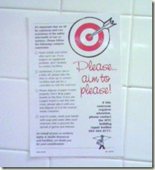 Apparently the scope of this problem is considerable, because this information campaign includes each of the bathrooms within the 17 stories of the company's first office building as well as the 6 story building I work in.