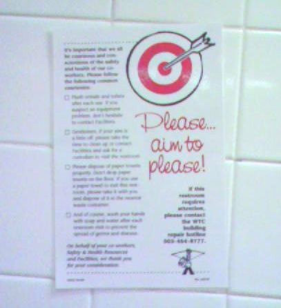 About a month ago signs showed up at my work, hung directly above the urinals: